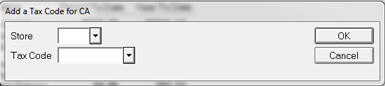 Press <Add>, and in the dialog that displays, enter the tax code to use for POS transactions created for the store you select in the Store field. Repeat this process for each of your stores.