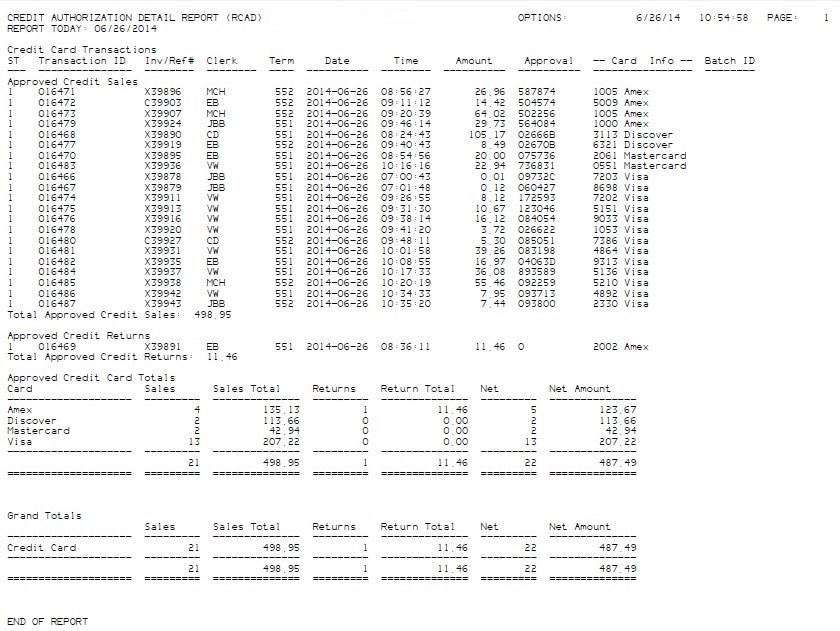 BlueTarp transactions will show up as a Private label card in the CARD viewer (new on Level 24.1 for the Epicor Payment Gateway), and on the RCAD, RDS & RCK reports. The CARD viewer is shown below as well as the Credit Authorization Detail Report.
