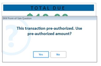 Upon invoicing an order the clerk will be alerted that the transaction was "pre-authorized" and asked if they want to use the pre-authorized amount. Selecting Yes will cause a deposit hold completion request to be submitted to BlueTarp against the original deposit hold for up the original amount of the deposit hold.