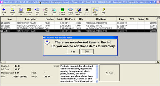 If the system asks if you want to add non-stocked items to the list, answer Yes to proceed with creating the item list, or answer No if you do not want to proceed with creating the item list.