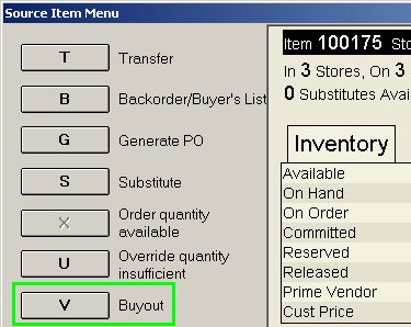 To post the item as a buyout item using the Quantity field, continue with step 3. To post a buyout item from the Source Menu, go to step 4.