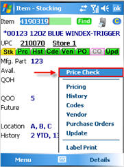 To display the Price Check screen, tap Details (or press F2) and select Price Check.