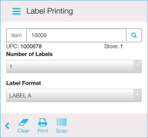 You can print labels, as needed, for your inventory counts based on the barcode, SKU number, or UPC code.