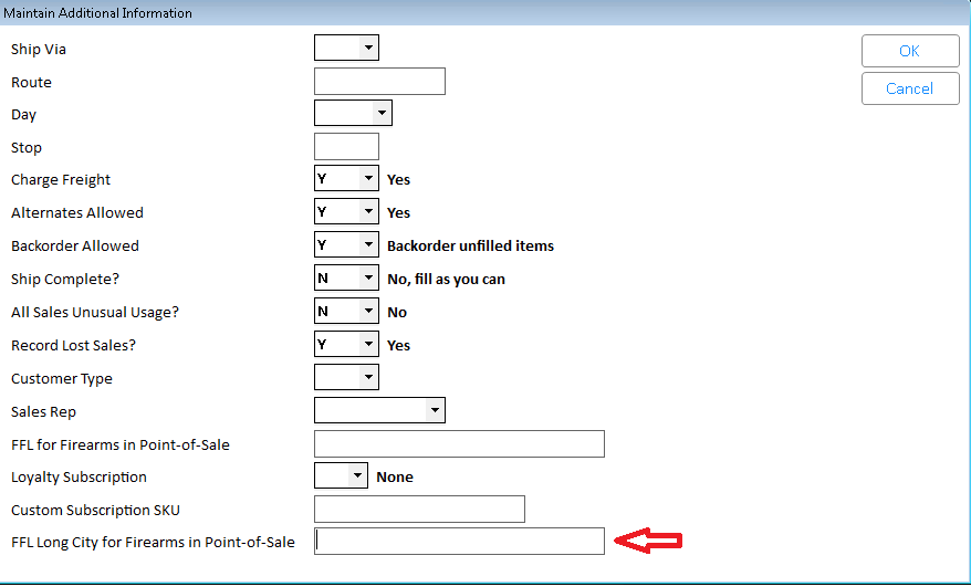 In the FFL Long City for Firearms in Point-of-Sale field, enter the long city name.