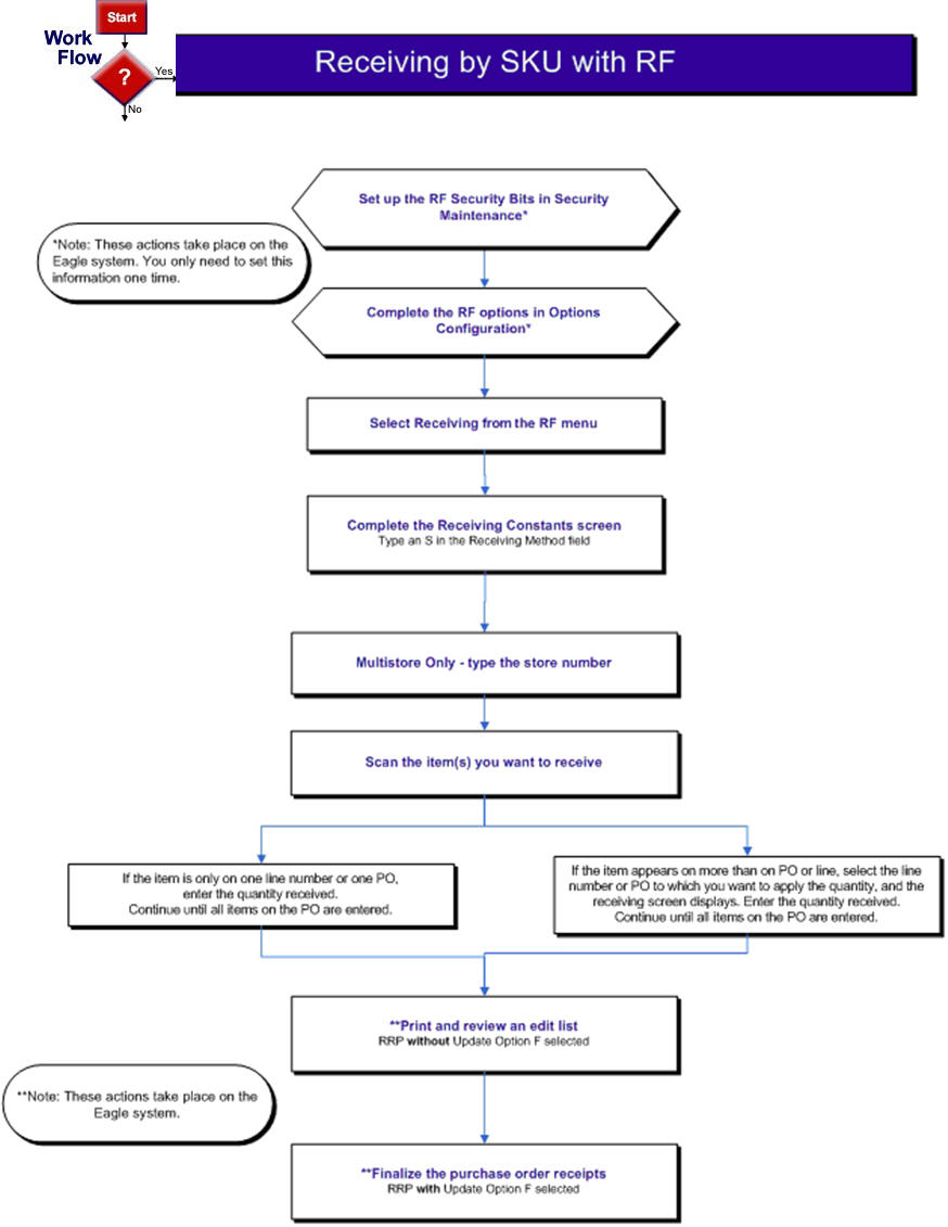 For more information about Receiving purchase orders by SKU number, see the RF User's Guide, document EL2104, available at www.epicor.com.