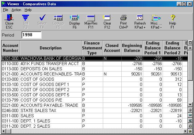 If you use third-party software to print your financial statements, use the following procedure to download General Ledger account information from the Comparatives Data Viewer to Excel. The Comparatives Data Viewer stores account information from both the current year and prior years.