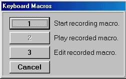 Select this option from the Tools menu to create keyboard macros. Keyboard macros allow you to record and save a series of keystrokes as a macro and assign the macro to one key combination. Use macros to make repetitive tasks faster and easier to complete.