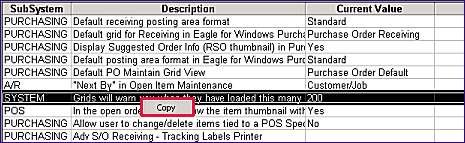 Display any grid in Eagle for Windows (Inventory grid, Options Configuration grid, etc.).
