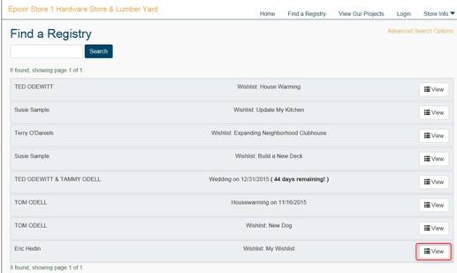 On the Registry homepage, type the name of the list and click Search. You can also leave the field blank and click Search to see a list of all registries.