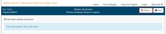 You can print the registry so it can be used as a shopping list by looking up the desired registry and clicking the Print button.