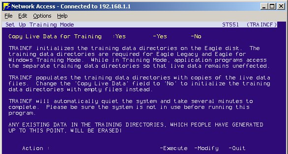 This message is to let you know that any previous work done in the Training Mode will be erased when the new copy of your data is moved into the Training Mode files. Type Y to continue and press Enter. The following initialize screen displays: