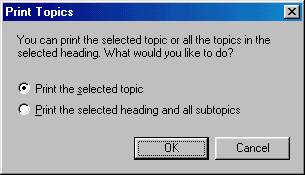 the default of "Print the selected topic" in the Print Topics