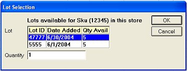 In the dialog box that displays, select the lot from which you're selling, and the quantity you're selling. Then click OK.