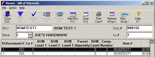 When a Bill of Materials (BOM) is invoiced at POS, the BOM and its components are recorded to the Invoiced Bill of Materials Viewer. Use the viewer anytime you want to display information about an invoiced BOM. (If you want to view information about a BOM that has NOT yet been invoiced, see the Open Orders BOM Viewer.)