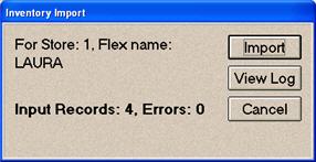 "The flex name XXX is in use. Please create a new flex name before importing” (where "XXX” is the value in the flex name field in Flexible Inventory Load. This error means you used an existing flex name in the Flex Name field, and your mapping does NOT exactly match. To remedy the problem, you can either 1) correct your mapping so it does match the existing Flex Name, or 2) simply type a different flex name (up to 8 characters) in the Flex Name field.