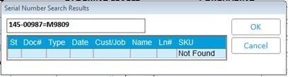 For items with a large number of serial numbers, instead of scrolling through a long list, you can now easily lookup a specific serial number. On the ‘All’ serial #’s dialog enter the serial number and click on the <Sold Info> button to see if that serial number has been sold and, if so, see the sale information for that serial number.