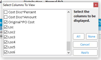 To view all 6 location codes in the viewer grid, right-click on the grid header, and select the Columns to View option.