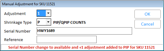 A message box will display stating how many serial numbers counts were removed from PIP.