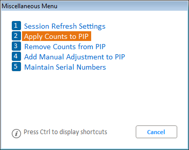 Click Misc Menu and select “Apply Counts to PIP”.