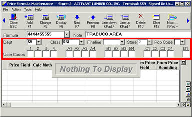 In the other fields above the grid, select the criteria for this price formula by filling in the desired fields. In the example below, we selected a particular department and class as the criteria.