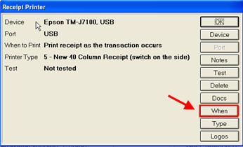 Double-click Receipt Printer, then click When in the Receipt Printer dialog box.