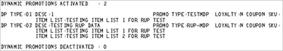 The RUP prints information for Dynamic Promotions (DPs) which are activated or deactivated.