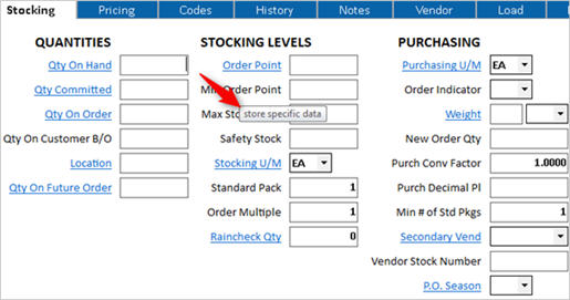 Multistore users: to tell if a field is master or store-specific information, place your cursor on the field label, and a message displays either "master data" or "store specific data."