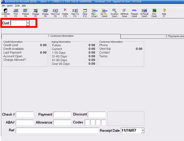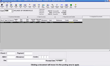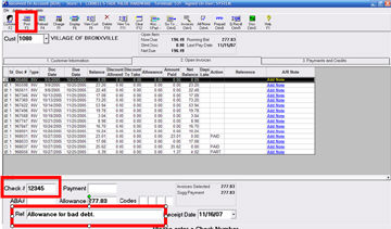 From the Received On Account window, you can enter a payment transaction for the purpose of writing off a bad debt. Use the Allowance field to enter the amount you are writing off as a bad debt.