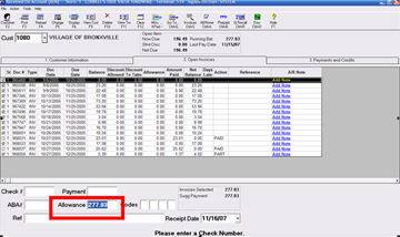 Note: If you are using ROA Multiple Allowances (option ID: 860) a window displays allowing you to select from the different allowances you have set up. Do not select an option; instead, click OK, and the allowance posts to the Write Offs (bad debt) GL account. See the Job Aid "ROA Multiple Allowances" for more information. |