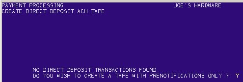 Once the pre-notification process is complete, then when you run payroll, direct deposit transactions are created for any employee that has been setup for direct deposit, and whose pre-notification date plus the Days After Prenotification field in PCON is equal to or greater than the date of the payroll run. Follow these steps to complete the pre-notification process.