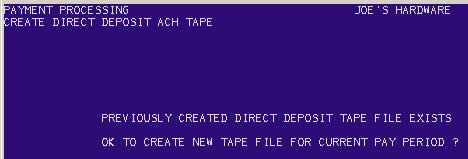 In the future, if you add more employees to payroll direct deposit, the system will set the internal pre-notification date when you run PPTU #3. Then the employee waits until the number of days after pre-notification has passed (as set in PCON) before direct deposit can begin. Note: If you change the Auto Deposit field in the employee record (PEMU) from Y to N, it will clear the internal pre-notification date. If you change it back to Y, the date would be set again when you run PPTU #3. Then the employee would have to wait until the number of days after pre-notification has passed (as set in PCON) before direct deposit can begin again. |