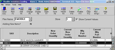 From the Flexible Inventory Loading (FIL) screen, choose Flex Name EMOBILE to review the New Order Quantities.