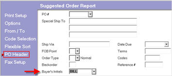 Click PO Header, and enter the Buyer’s Initials and any other required information in the fields.