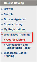 From the menu on the left hand side of the screen, click Web-Based Training, and then Course Listing.