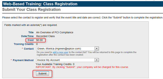 Keep in mind that some courses are free of charge, and others have a fee. This will be reflected on the Registration Submission page. If the amount is $0.00 and you click submit, do not worry – you will not be charged a fee.