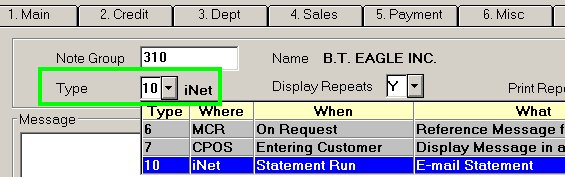 Set up the customer account: Misc tab fields Complete the following to review the e-Statement defaults.
