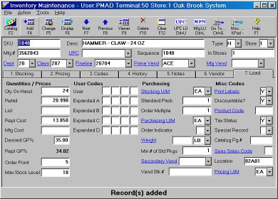 The following steps show you how to create new SKUs. To quickly and easily load information for a new inventory item, use the Load tab on the Inventory Maintenance screen. This task is performed from the Eagle Browser. |