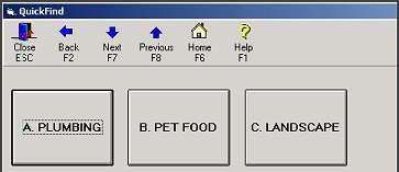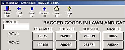 Start using QuickFind at POS From the POS window, click Quickfind. Select the category, and subcategory if necessary. When the grid appears, click the item you want to sell. You will return to the POS item entry screen. Type the quantity and press <Enter>. |
