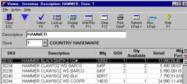 To find many items, type fewer words in the Desc box. For example, type HAMMER to display many items. To find a particular item, type most or all of the description. For example, type HAMMER CLAW16OZ to display only a few items.