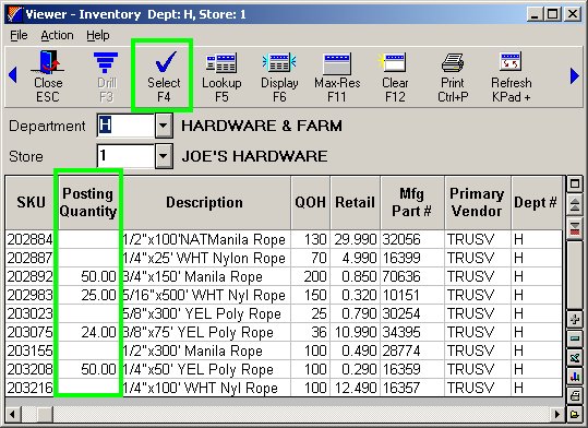 Enter quantities For the items that you want to post to the POS transaction, enter the amount in the Posting Quantity column. If you enter a quantity as a negative amount (for example, – 3), then the quantity is posted as a negative and the item is considered to be a return (line item credit). |