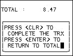 Print Trxns, type Y or N, <Enter>. Select Large or Small
