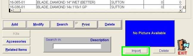 In the Rental Item Maintenance window, select the item to add a photo to and then click Import.