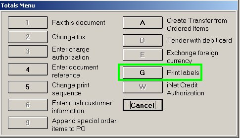 From the Totals Menu, click G-Print labels to display the print labels dialog.