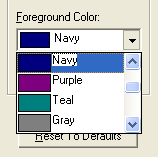 Use the Font button to open a dialog box allowing you to choose the font. Use the Item drop-down list to select the display item you want to customize. Use the Foreground Color drop-down list to select the text color for some of the items in the results table. The Background Color is not editable. Use the Reset to Defaults button to undo any changes you made.