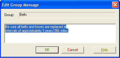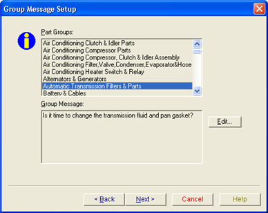 Group Messages Setup displays a list of part groups and their associated messages.