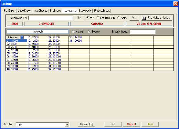 When looking up service intervals for a vehicle in ServicePlus, you must first specify a vehicle using the YMME, VIN, or AAIA methods.