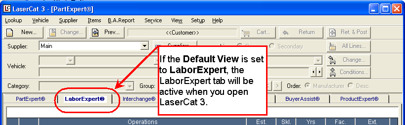 Specifies which feature is active when a user first starts LaserCat 3. For instance, if the default view is set to LaborExpert that feature will be active when the user first starts up LaserCat 3.