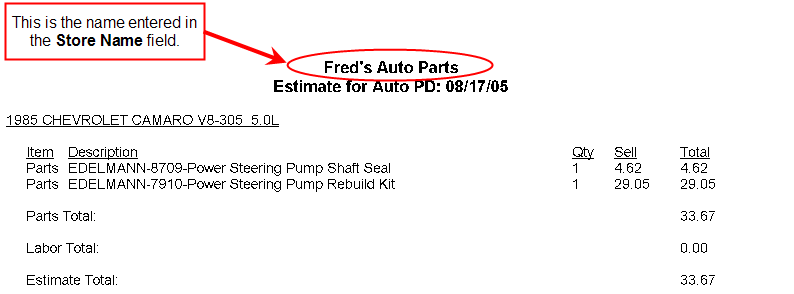 Whatever you type in this field becomes the name of the store. For example, if you enter Fred's Auto Parts, that name will be printed at the top of any reports that LaserCat 3 produces.