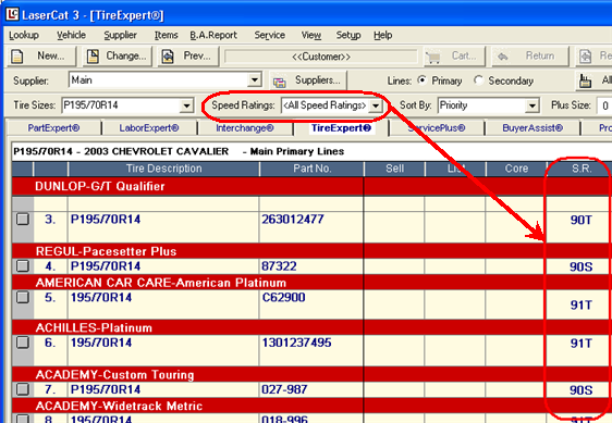 If this option is set, the default for tire lookups is to display all speed ratings in the results window. But you can still narrow your search to a single speed rating.