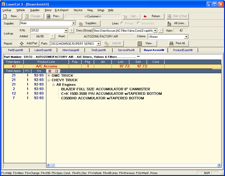 After you perform a lookup in BuyerAssist, the results display on the main LaserCat 3 window. You can manipulate your lookup in various ways. For example, you can: